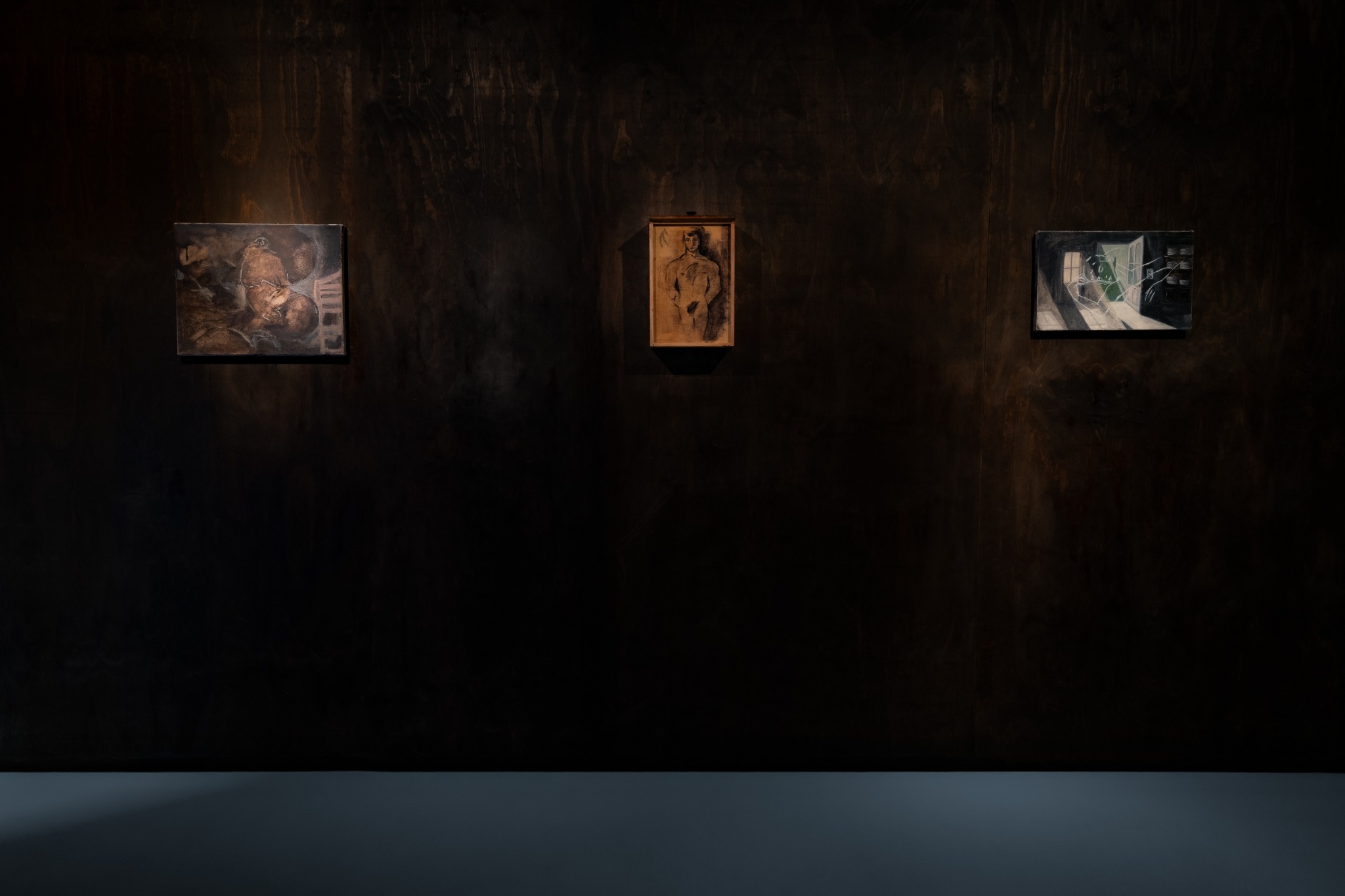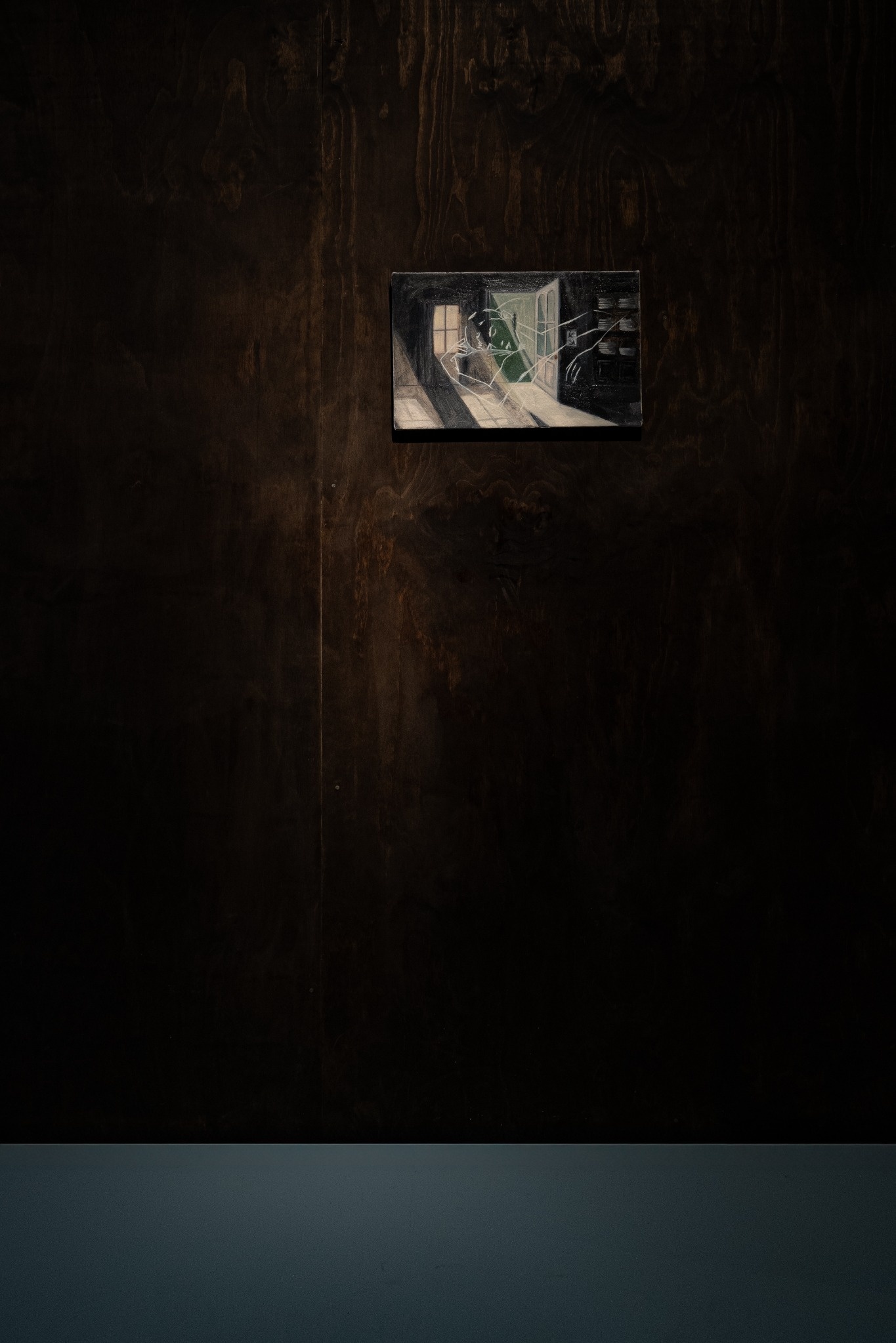 Thew Smoak's paintings appear sedimented in this way, made up of the layers of what was there – a canvas, a tea towel, a wooden drawer – and what wasn't: a room, a bed, the outline of the last person who wordlessly checked out of your orbit, leaving you to wonder. As humans we tend to want to deduce some kind of sense from the these fragments, extracting lines of causality, reading serendipity as fate, or pathetic fallacy.